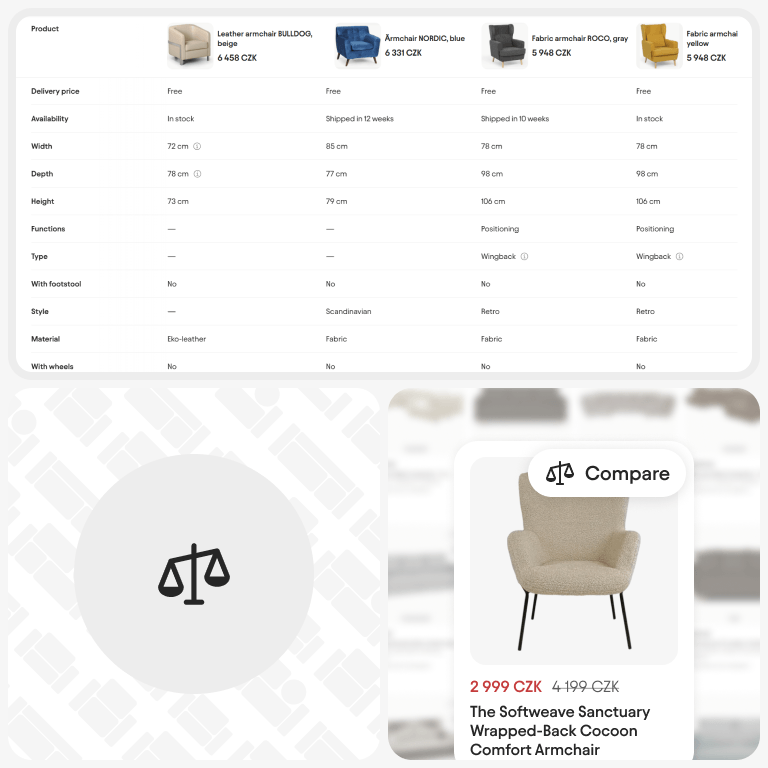 Confronta i prodotti in modo chiaro in una tabella con foto, prezzi e tutti i parametri affiancati.